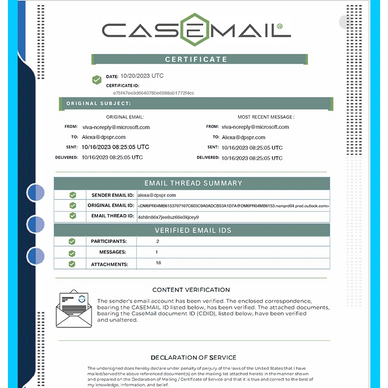 When you authenticate your account with CaseMail, you select ONLY the email thread data that requires verification and certification. Data collected is non-human readable unless shared or authorized by you.